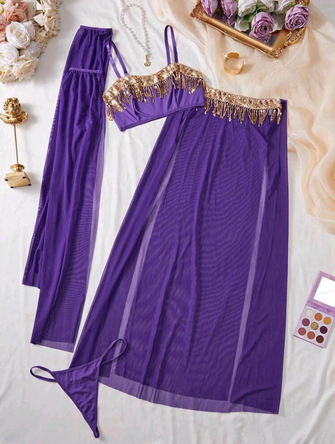 A royal vision in red. ⨠This enchanting ensemble, adorned with golden accents and flowing sheer fabric, is made for a queen of the night. š„š¤š
