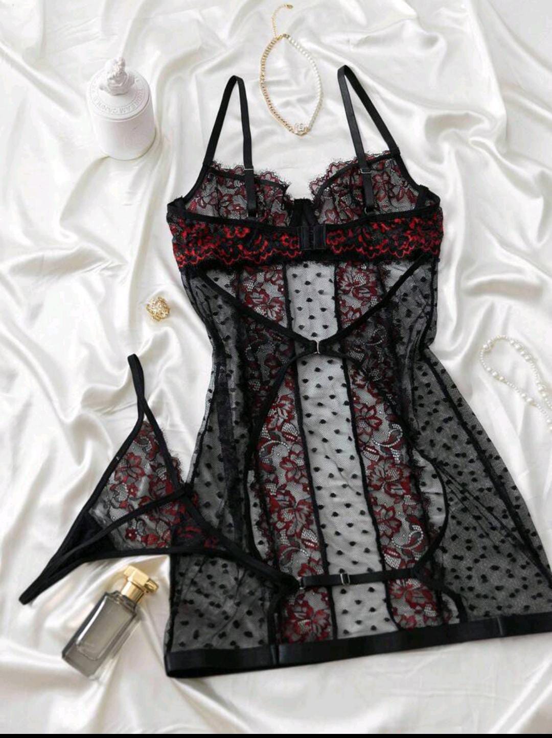 Seductively sheer, this 2-piece lace underwire bra and matching G-string set is made to turn nights unforgettable. š„š¤š