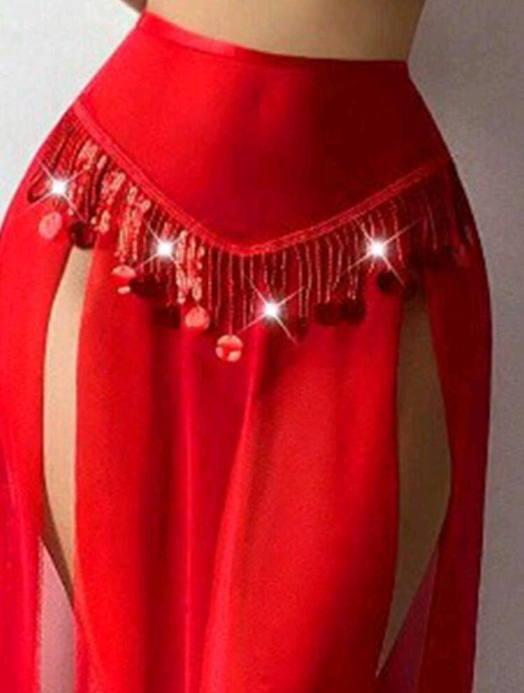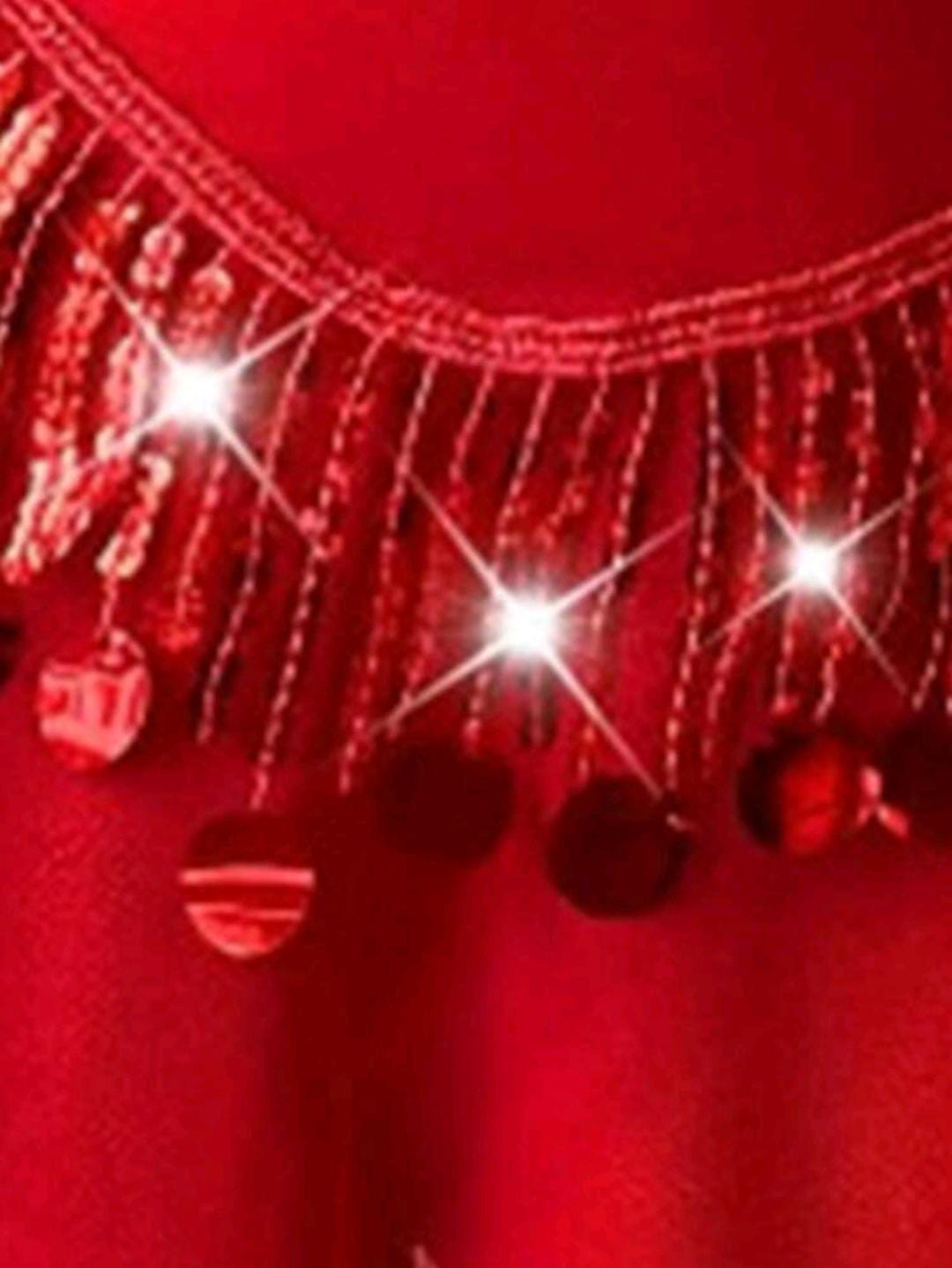 A royal vision in red. ⨠This enchanting ensemble, adorned with golden accents and flowing sheer fabric, is made for a queen of the night. š„š¤š