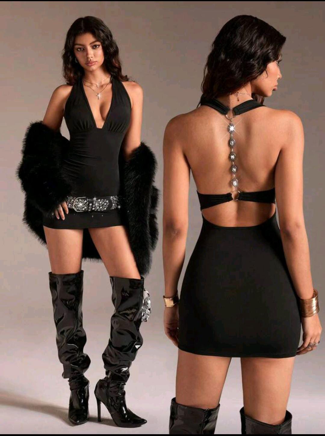 Clean, bold, and dangerously simple. Deep V in the front, open-back drama in the back, and a body-hug fit that doesn’t negotiate.