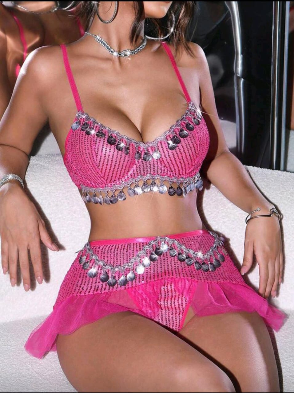 Hot pink sparkle with that flirty mini skirt vibe — loud, shiny, and impossible to ignore. ✨💗